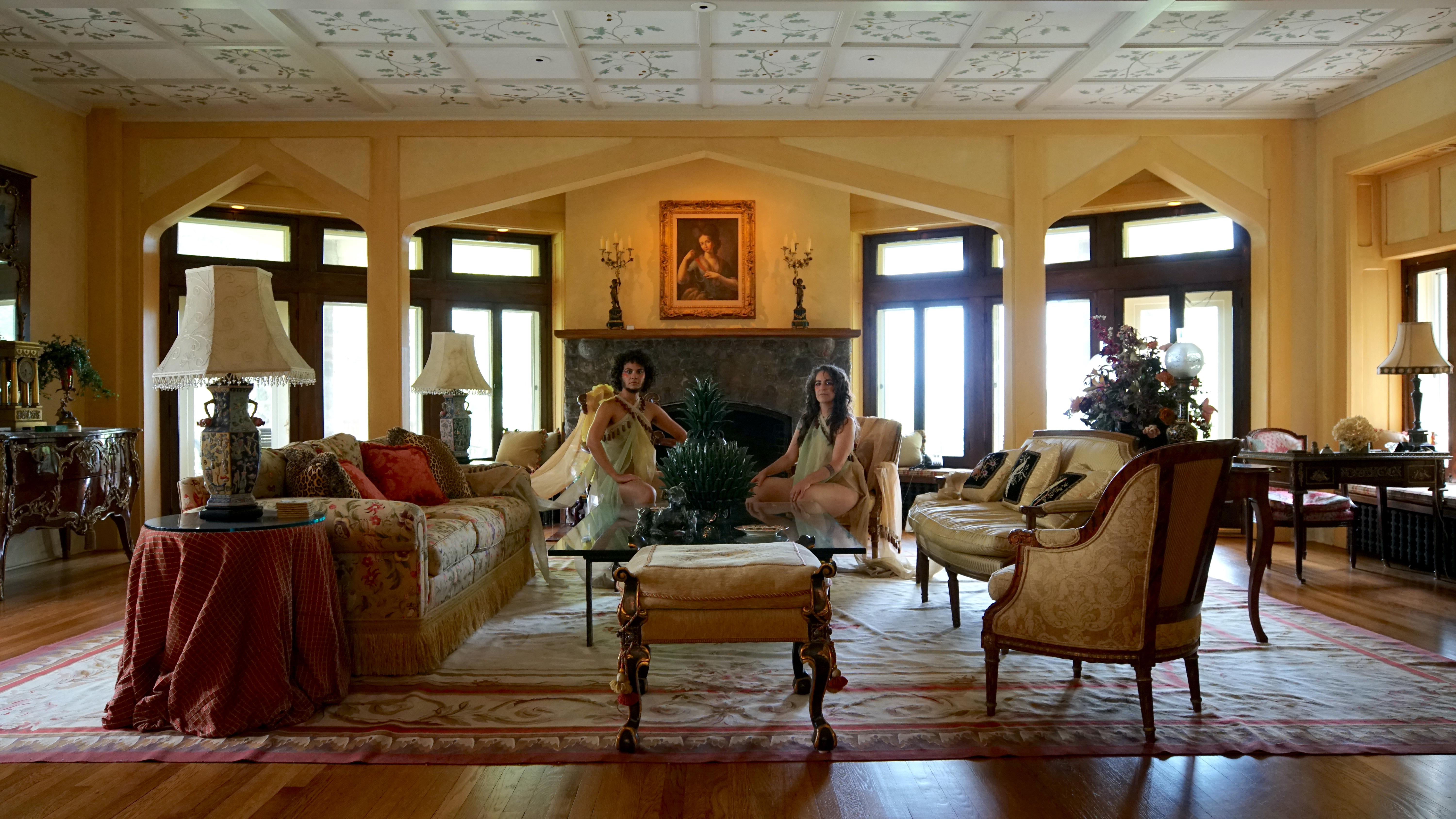 “Land/Escapes” considers the present-day responsibilities of settlers. Two queer immigrant settlers build, play, melt, and devolve in fantastical lands and amidst crumbling colonial estates. Cycling and stunted, these occupiers of unceded lands ask “Where do we go?”